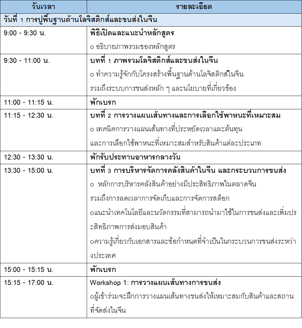 o เกิดความสามารถในการวางแผนและจัดการเส้นทางขนส่งให้สอดคล้องกับความต้องการของตลาดจีน