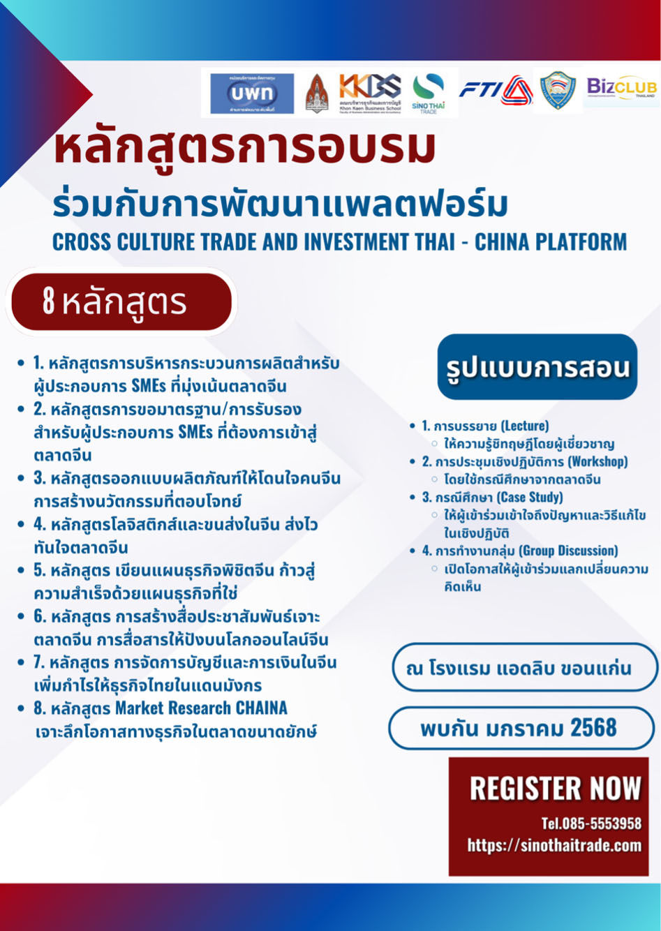 1. หลักสูตรการบริหารกระบวนการผลิตสำหรับผู้ประกอบการ SMEs ที่มุ่งเน้นตลาดจีน